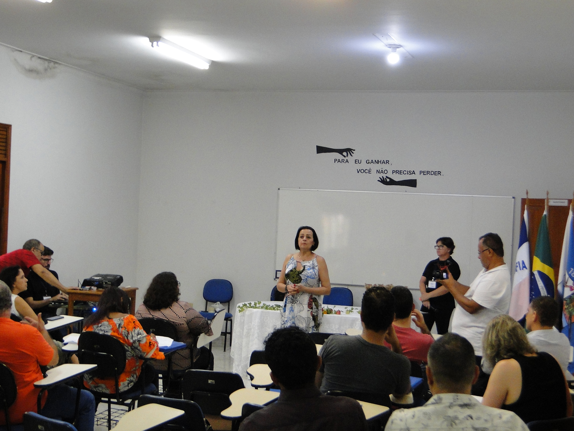 Também aconteceram três palestras. A primeira, intitulada “Comunicação em EaD do Cefor-Ifes: Os desafios na visão da Coordenação de Tutoria”, proferida pela professora mestre Teresa Cristina Maté Calvo, direcionada para os coordenadores de Polo, coordenadores de curso, professores e tutores.