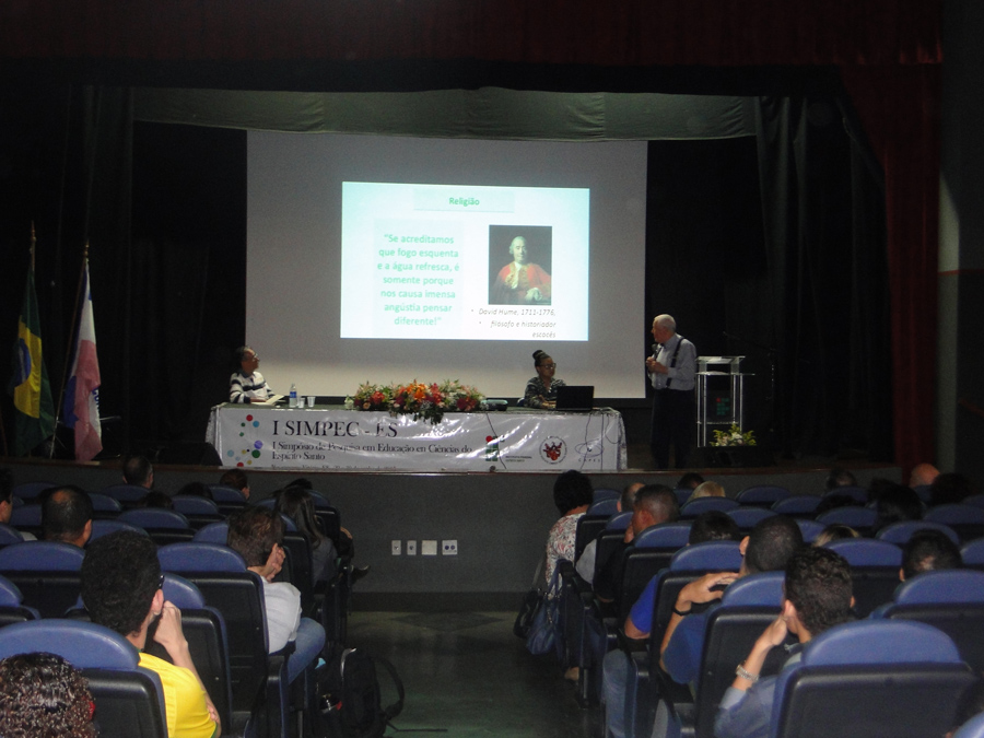 Durante o evento, além da apresentação cultural da Banda de Congo Panela de Barro de Goiabeiras, que animou o público presente, o SIMPEC-ES recebeu como conferencista o professor e escritor Doutor Attico Chassot que conduziu uma palestra sobre o tema “Da disciplinaridade a indisciplina”. O professor que atua como docente desde o ano de 1961, falou sobre como se discutir o ensino da ciência de uma forma diferenciada e que para se obter disciplina, as vezes há a necessidade de implantar a indisciplina. “Discutir o ensino da ciência é algo espetacular e precisamos fazer isso da melhor forma possível”, contou o professor. Nesta mesma noite, o professor Attico Chassot fez o lançamento de seu novo livro cujo tema foi o mesmo proferido em sua palestra: “Da disciplinaridade a indisciplina”