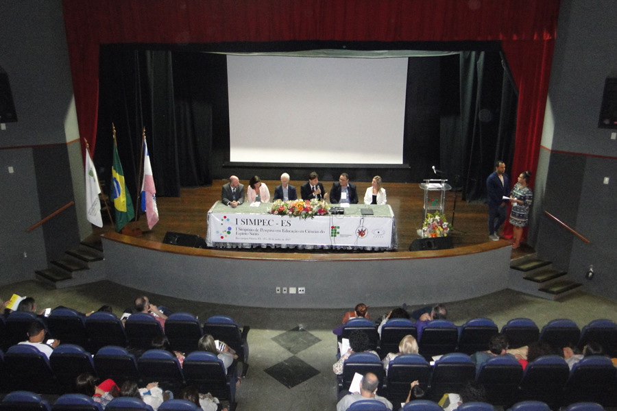 O evento teve a mesa composta pelo coordenador do Simpec-ES, Sidnei Quezada; a Diretora de Pesquisa e Pós-Graduação do Campus Vitória, Márcia Regina Lima, representando o Campus Vitória; a Diretora do Cefor, Vanessa Batesttin Nunes; o Diretor Técnico Científico da Fundação de Amparo à Pesquisa e Inovação do Espírito Santo (Fapes), Rodrigo Ribeiro Rodrigues, representando a presidência da Fapes; o Pró Reitor de Pesquisa e Pós-Graduação da Universidade Federal do Espírito Santo (UFES), Neyval Costa Reis Júnior; e o Reitor do Instituto Federal do Espírito Santo, Denio Rebello Arantes.