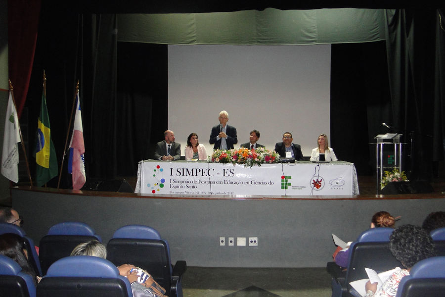 Na noite de ontem, 29 de Junho de 2017, aconteceu a abertura do I Simpósio de Pesquisa em Educação em Ciências do Espírito Santo (Simpec-ES), realizado pelo Centro de Referência em Formação e em Educação a Distância(Cefor), do Instituto Federal do Espírito Santo. O evento acontece no Teatro do Campus Vitória, em Jucutuquara e teve início a partir das 18 h, com previsão de término para o início da noite desta sexta-feira.