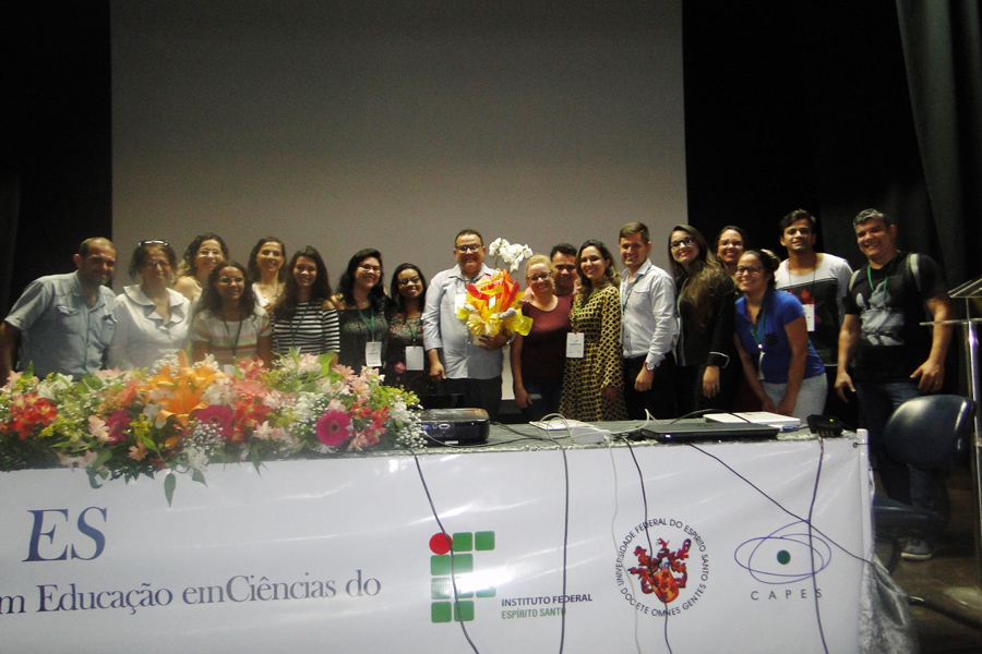 Além de debates e apresentações de painéis, o fechamento do Simpec - ES contou com uma homenagem organizada pelos alunos do Curso de Pós-Graduação Stricto Sensu em Educação em Ciências e Matemática - Programa Educimat, do Cefor, para o professor Sidney Quezada, idealizador do evento.