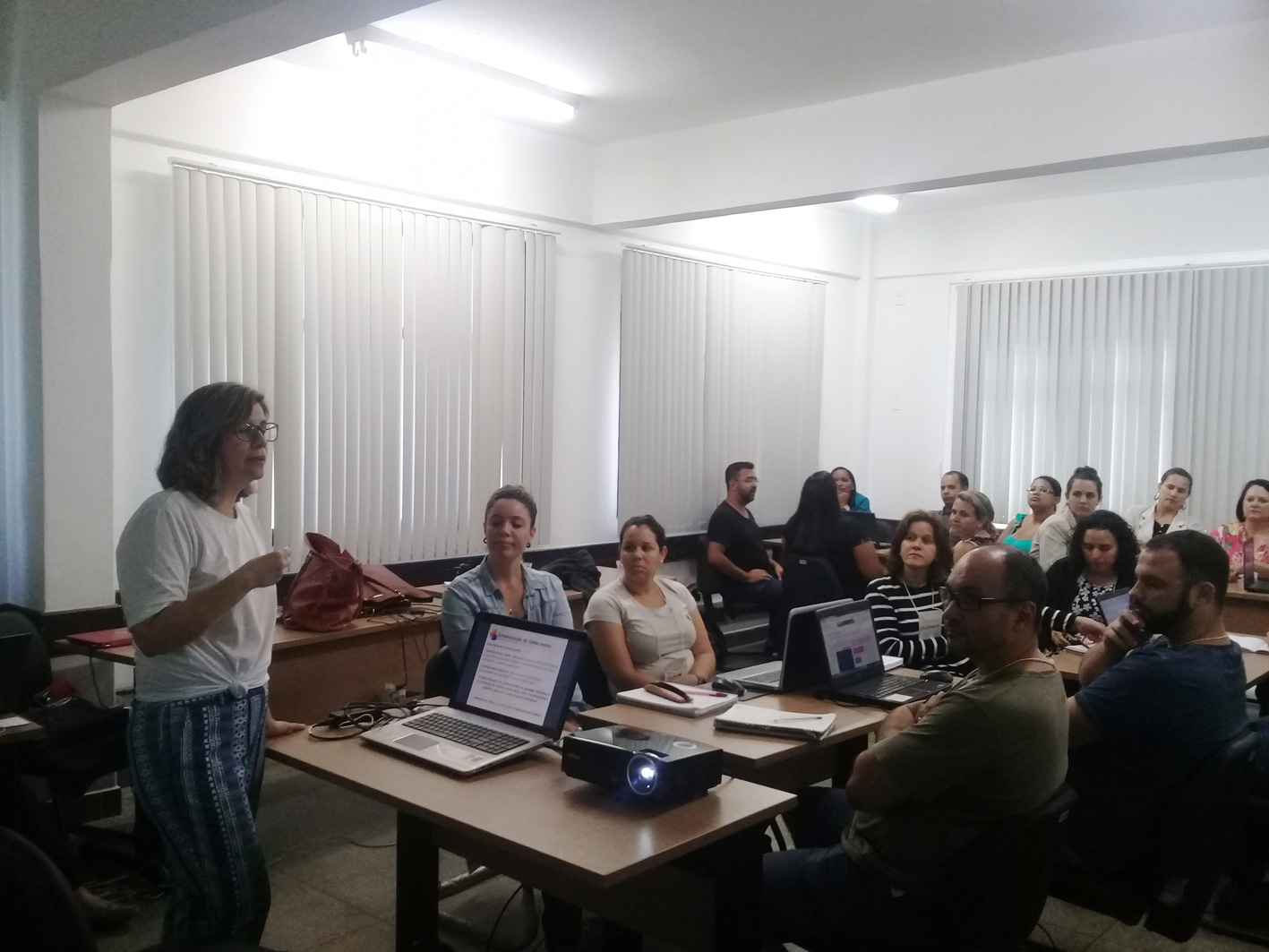 Entre os dias 18 e 20 de outubro, as professoras Marize Lyra Silva Passos e Isaura Alcina Martins Nobre ministraram a sexta Oficina de Aprendizagem Ativa com o tema Uso de Tecnologias para o Ensino do Século XXI. O objetivo foi permitir aos cursistas, por meio da vivência na oficina, uma reflexão sobre o uso da aprendizagem ativa e do ensino centrado no aluno baseado no uso de Tecnologias para Ensino do Século XXI.